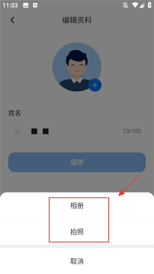 4、于选择框内挑选【相册】或者【拍照】,以此完成头像更换操作。