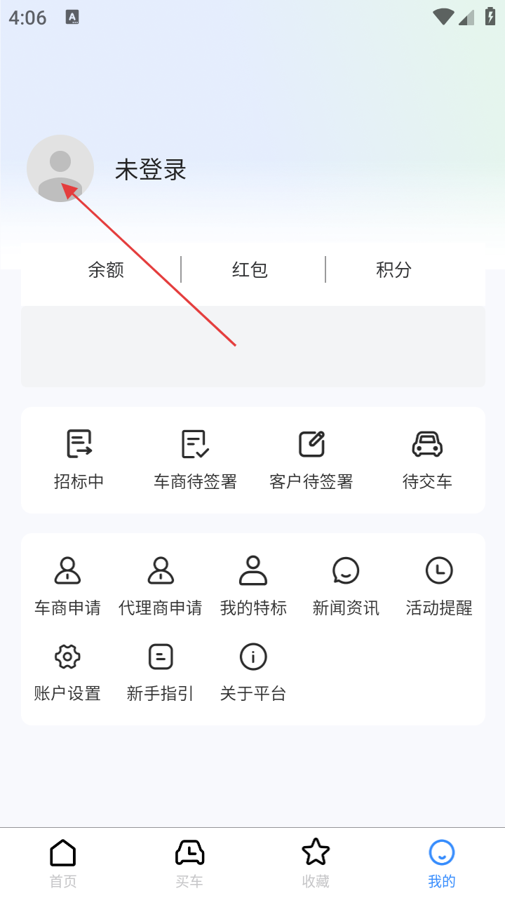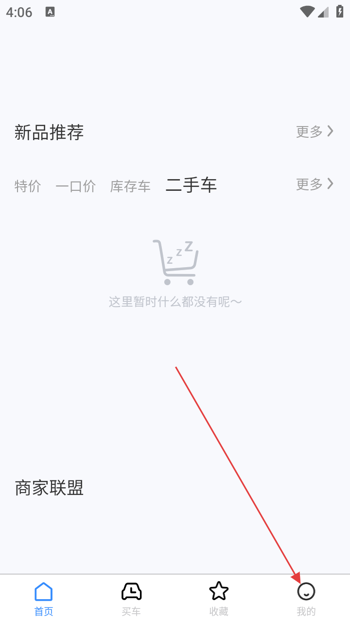 1、打开标车网进入首页面,点击底部【我的】,进入个人中心页。