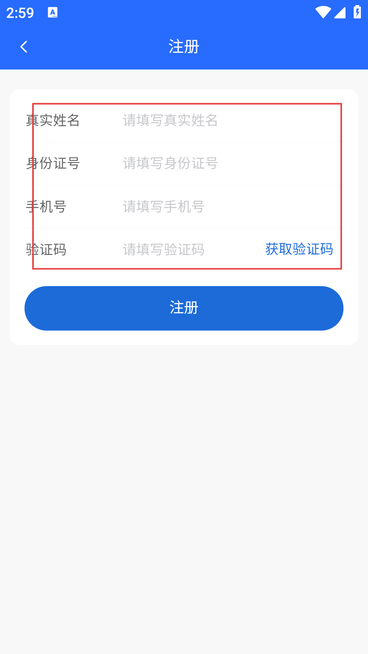3、在注册页,依次填【真实姓名、身份证号、手机号、验证码】,确保信息准确。