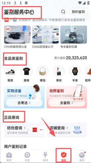 4、使用鉴别服务:点击“鉴别”标签,使用平台提供的鉴别服务确保商品真伪。