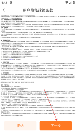 1、阅读【用户隐私政策条款】后,点击【下一步】进入星驿付登录流程。