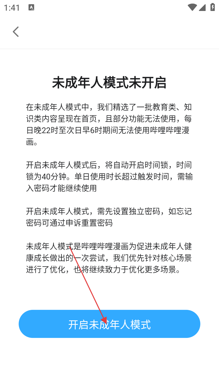 哔哩哔哩漫画怎么开启未成年模式