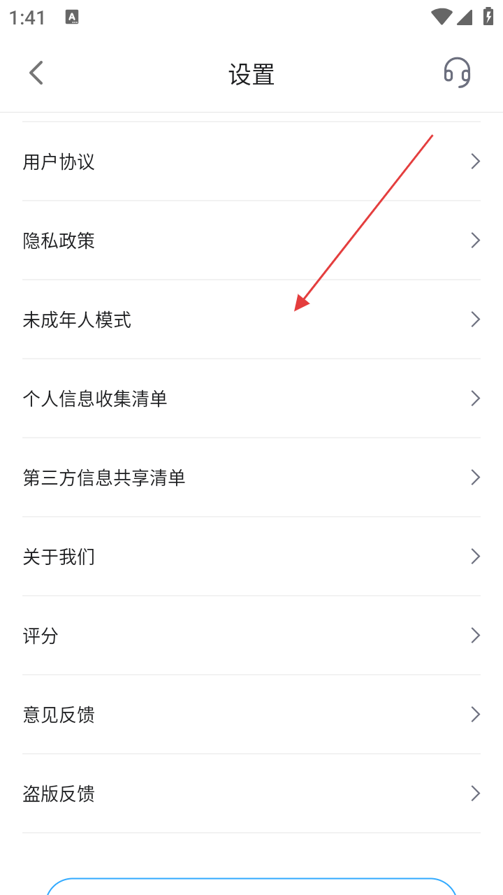 3、在设置页面,找到【未成年人模式】选项并点击,进入相关设置界面。