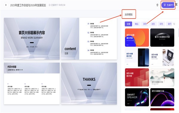 4.选择一个你喜欢的模版,点击生成PPT