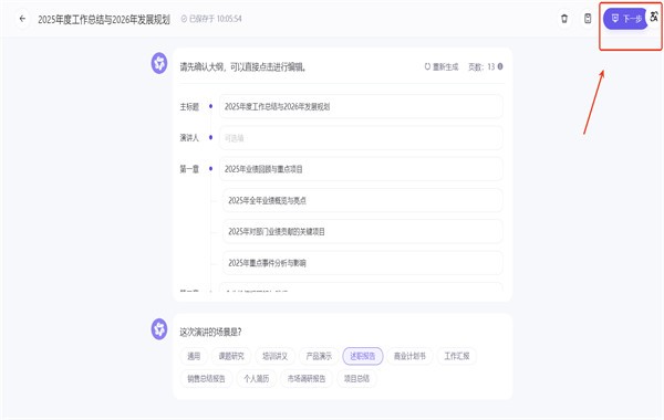 3.确认大纲后,点击右上角的下一步
