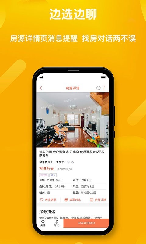 2、全流程服务:整合看房、签约、贷款等购房全环节。内置房贷计算器,快速测算还款金额。