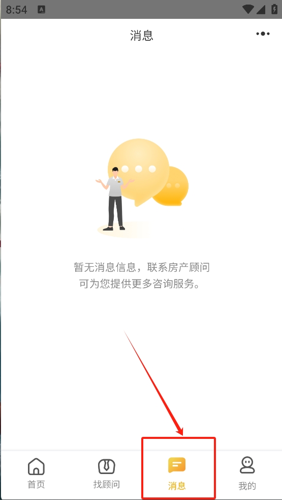 3、然后,点击“消息”图标,查看与顾问的沟通记录或其他消息通知。