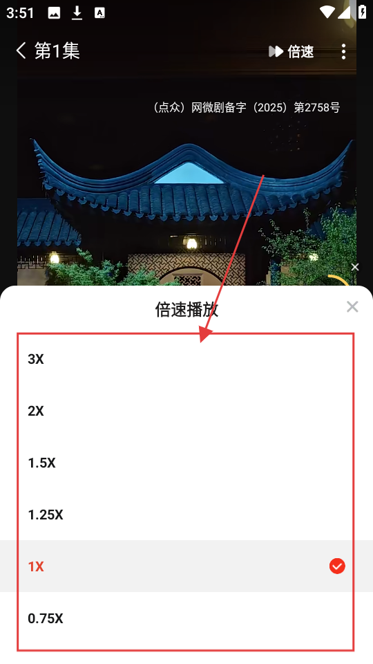 3、打开倍速设置后,会出现3X、2X、1.5X等多种倍速选项,可根据自己的观看需求选择合适的倍速。