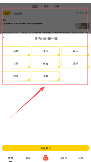 1、下载并安装搜狐资讯,首次登录时,可以根据个人兴趣选择关注的领域,如娱乐,科技,美妆等。