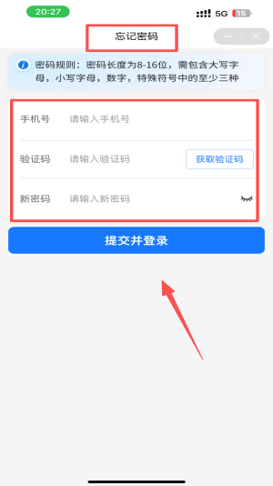 3、重置密码:若忘记密码,点击“忘记密码”,输入手机号和验证码后设置新密码。