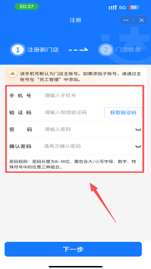 3、接着点击下一步,填写好门店信息后就可以进行登录。