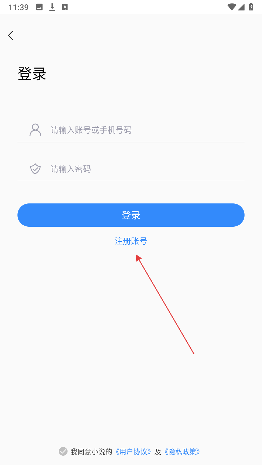 3、在登录页,点击【注册账号】跳转至注册界面。