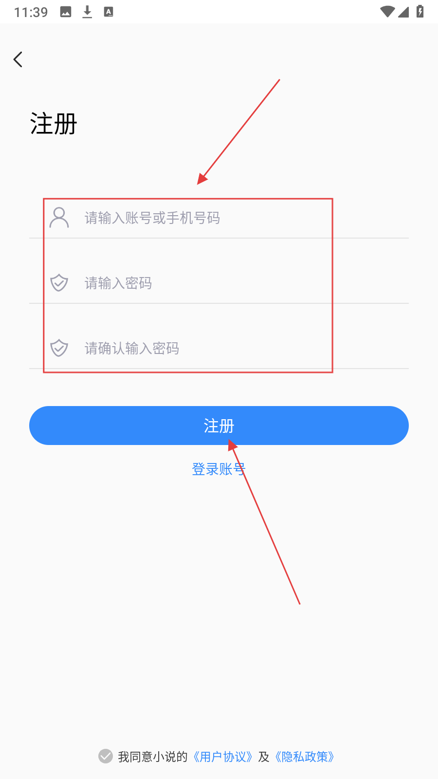 4、在注册页,【填写信息】后点击【注册】即可完成账号注册操作。