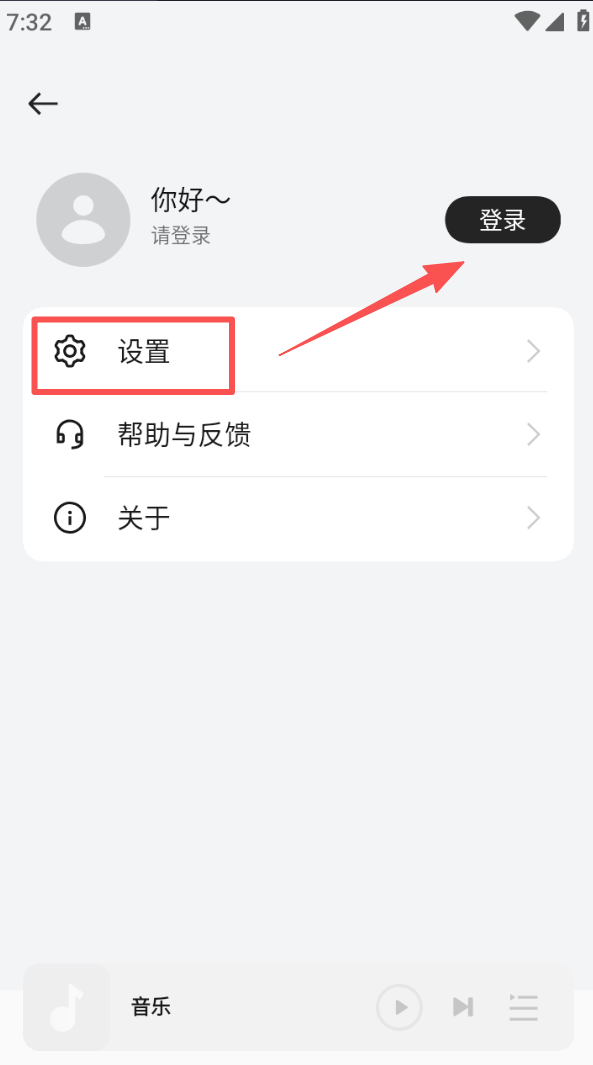 4、点击个人页面的 “设置” 选项,可对软件进行相关功能设置;也可点击 “登录” 按钮完成账号登录操作。
