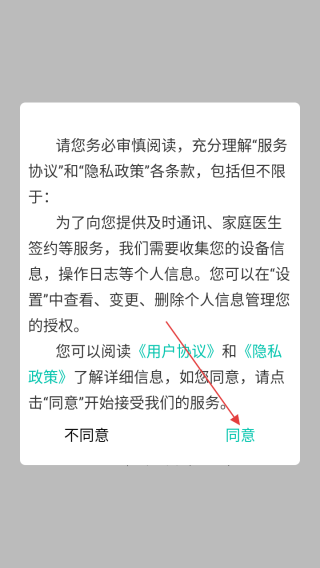 1、打开应用查看协议点击同意。