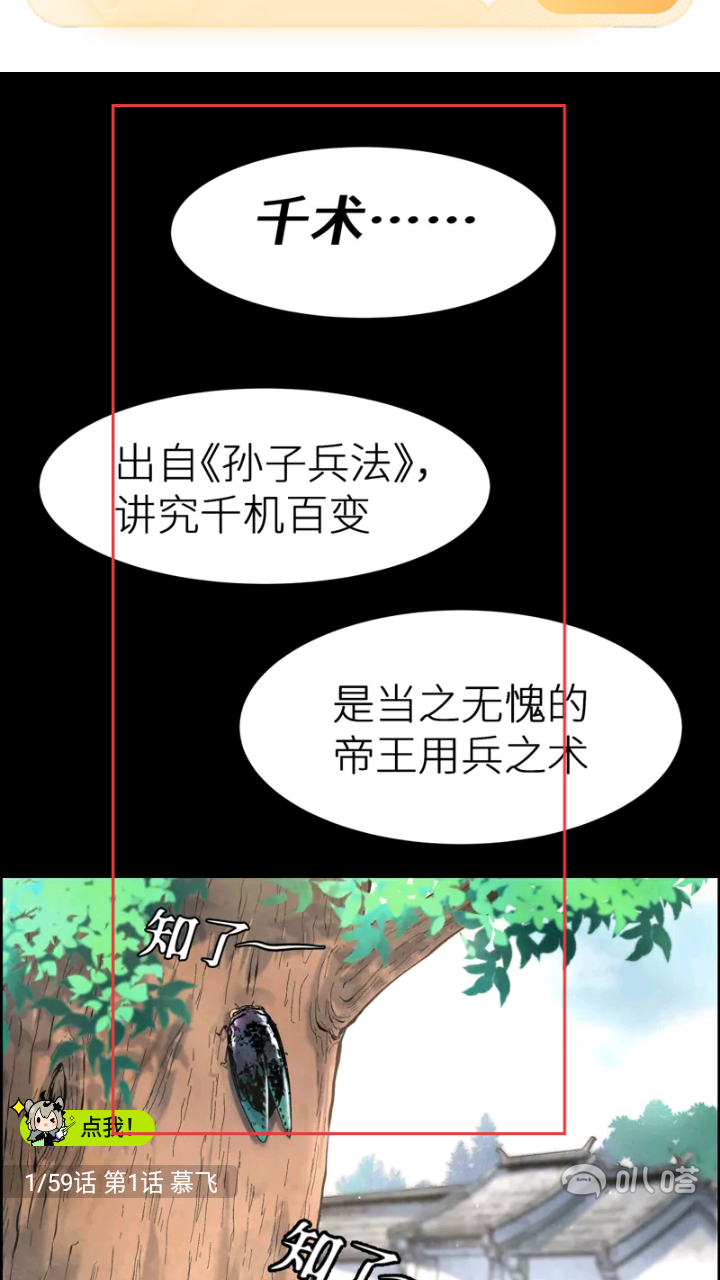 3、进入漫画阅读界面,可阅读漫画内容,了解剧情信息,如“千术”出自《孙子兵法》等知识。