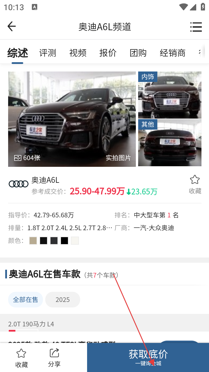 4、进入车型频道,若想了解底价,点【获取底价】,可一键询全城经销商,了解购车优惠。