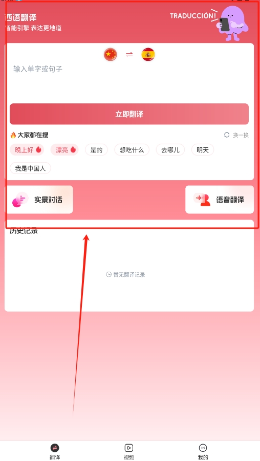 西班牙语翻译助手专为需要翻译和学习西班牙语的人士打造,支持中文与西班牙语之间的快速互译,方便用户与西班牙语使用者进行交流,收录了丰富的西班牙语词汇和句子,用户可以随时通过此平台积累词句,提高语言能力。