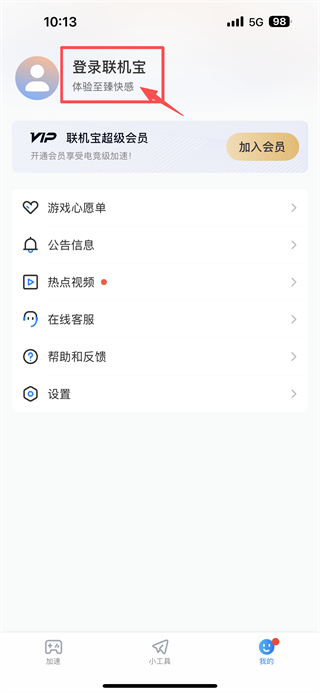 2、在个人中心,点击登录联机宝区域,进入登录界面。