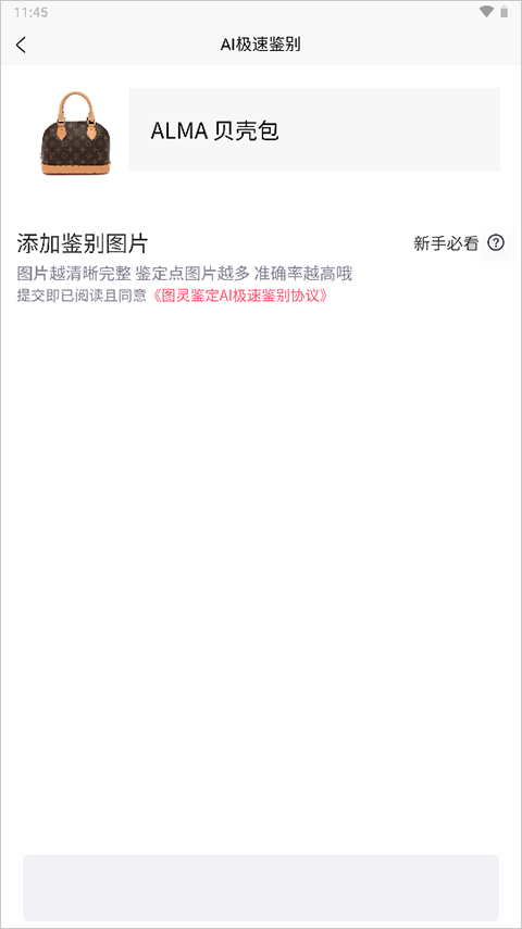 5、这个时候就需要你上传鉴别物品的图片即可进行鉴别了哦,不过这个图片越清晰完整就越准确。