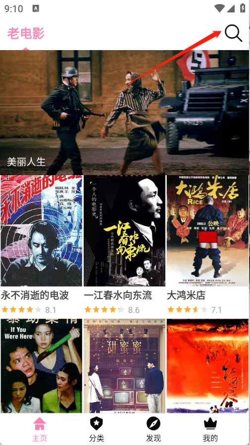 1、在Hanime软件的首页,点击右上角的搜索按钮。