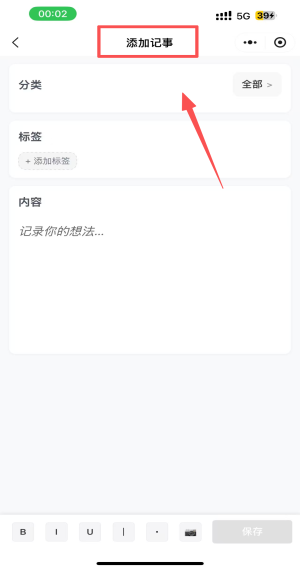 3、点击“添加记事”输入记事内容,点击“保存”保存。