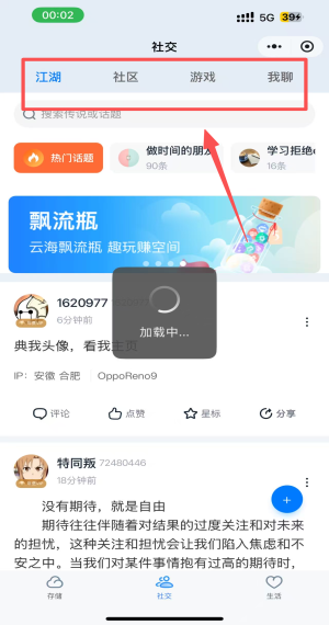 4、在社交页面点击“江湖”搜索并参与热门话题讨论。