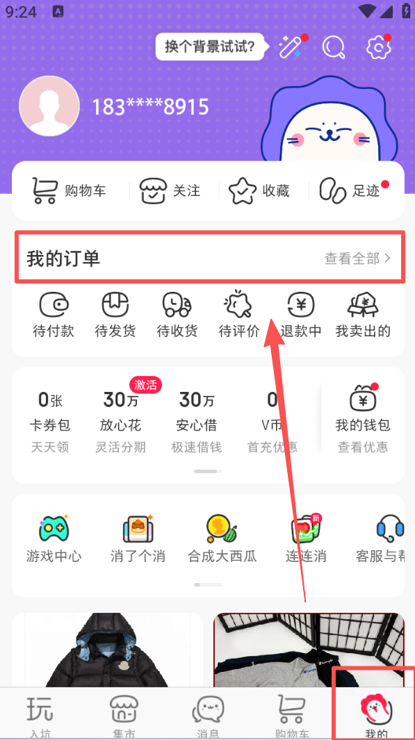 4、点击底部 “我的”,在个人页面可查看 “我的订单”,了解订单的待付款、待发货等状态。