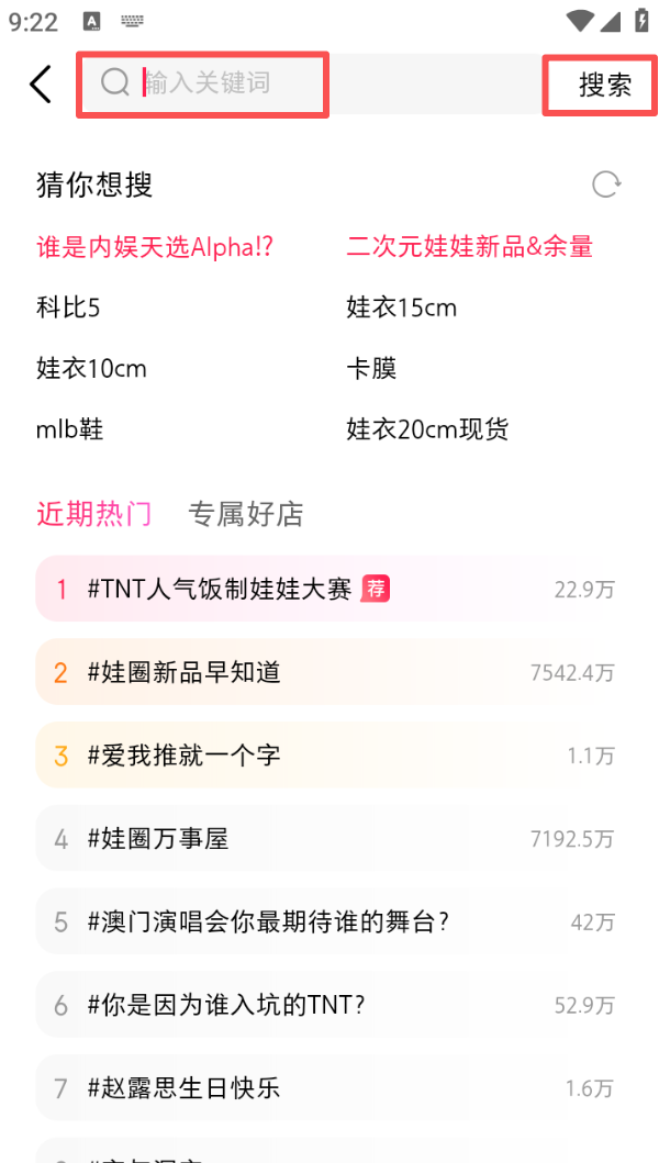 2、进入搜索页面,输入关键词后点击 “搜索”,即可查找相关商品或内容。