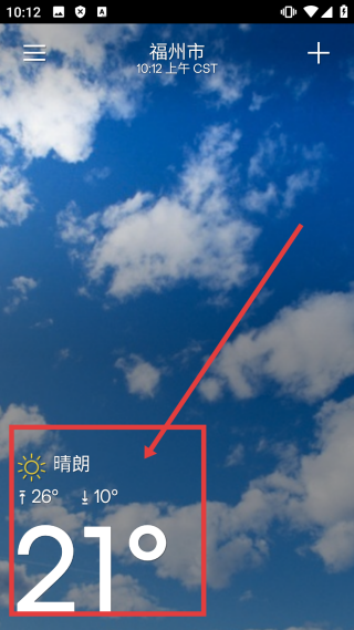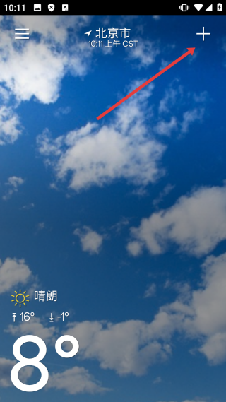 1. 在天气页面,点击右上角的【+】,即可进入城市搜索页面。