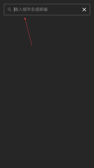 2. 在城市搜索界面的搜索框内,输入【城市名或邮编】。