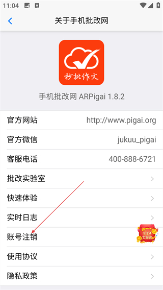3、在关于手机批改网页面,选择【账号注销】选项,进入注销账户说明页面。