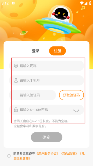 3、进入登录界面输入昵称、手机号、验证码、以及密码即可注册。