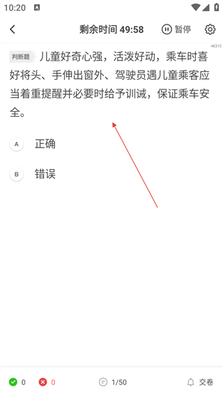 3、在考试答题页面,根据题目要求选择答案。