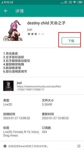 浏览创意工坊中的桌宠,选择心仪的桌宠后,点击【下载】。