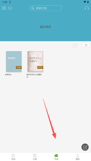 2、在主界面,点击底部的“书架”图标,查看已添加的文档。