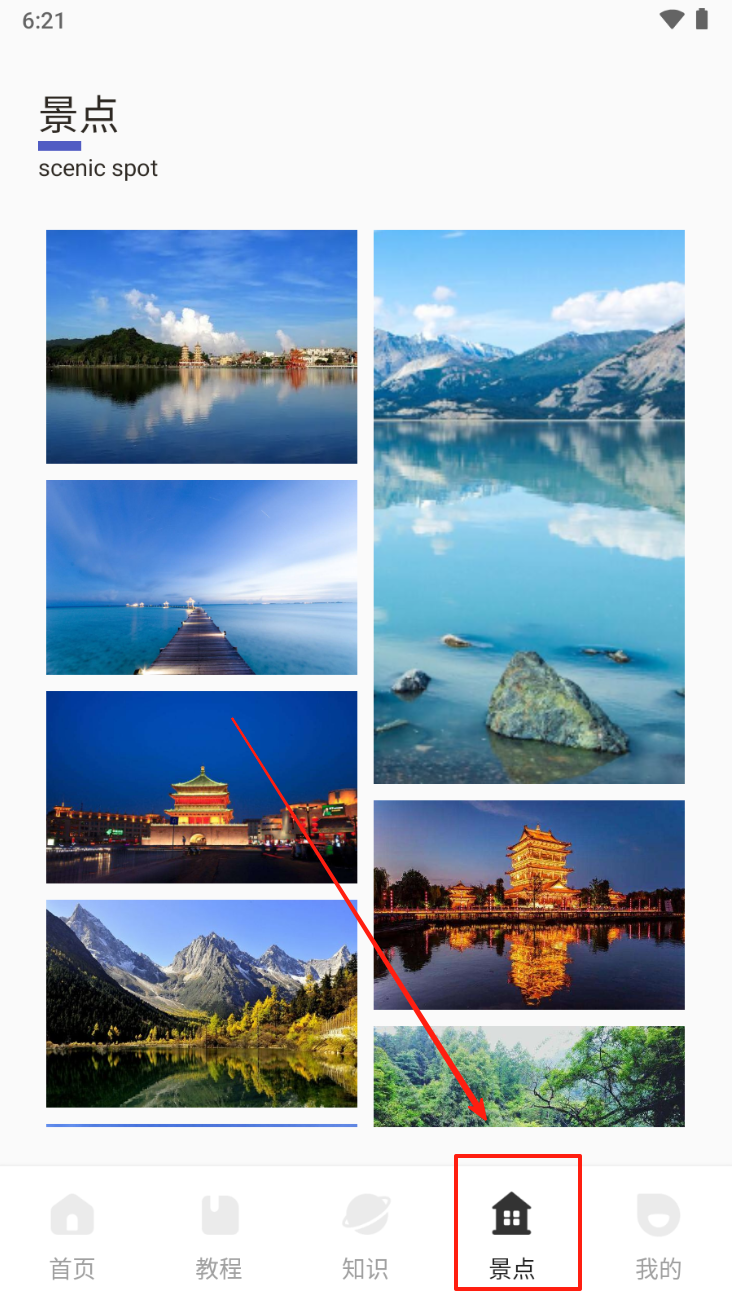 4、点击底部导航栏中的“景点”选项,探索不同的摄影景点,获取灵感和拍摄建议。