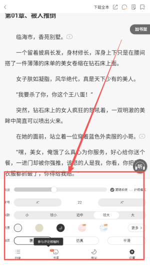 4、阅读设置选项允许用户自由调整界面背景和字体样式,打造最符合个人喜好的阅读环境,让您畅享无阻阅读乐趣。