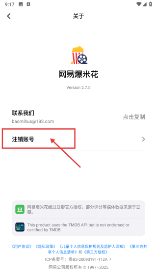 4、在关于界面,点击注销账号选项,发起账号注销操作。