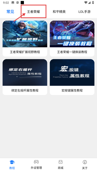 2、在教程页面当中点击王者荣耀按钮进入页面。