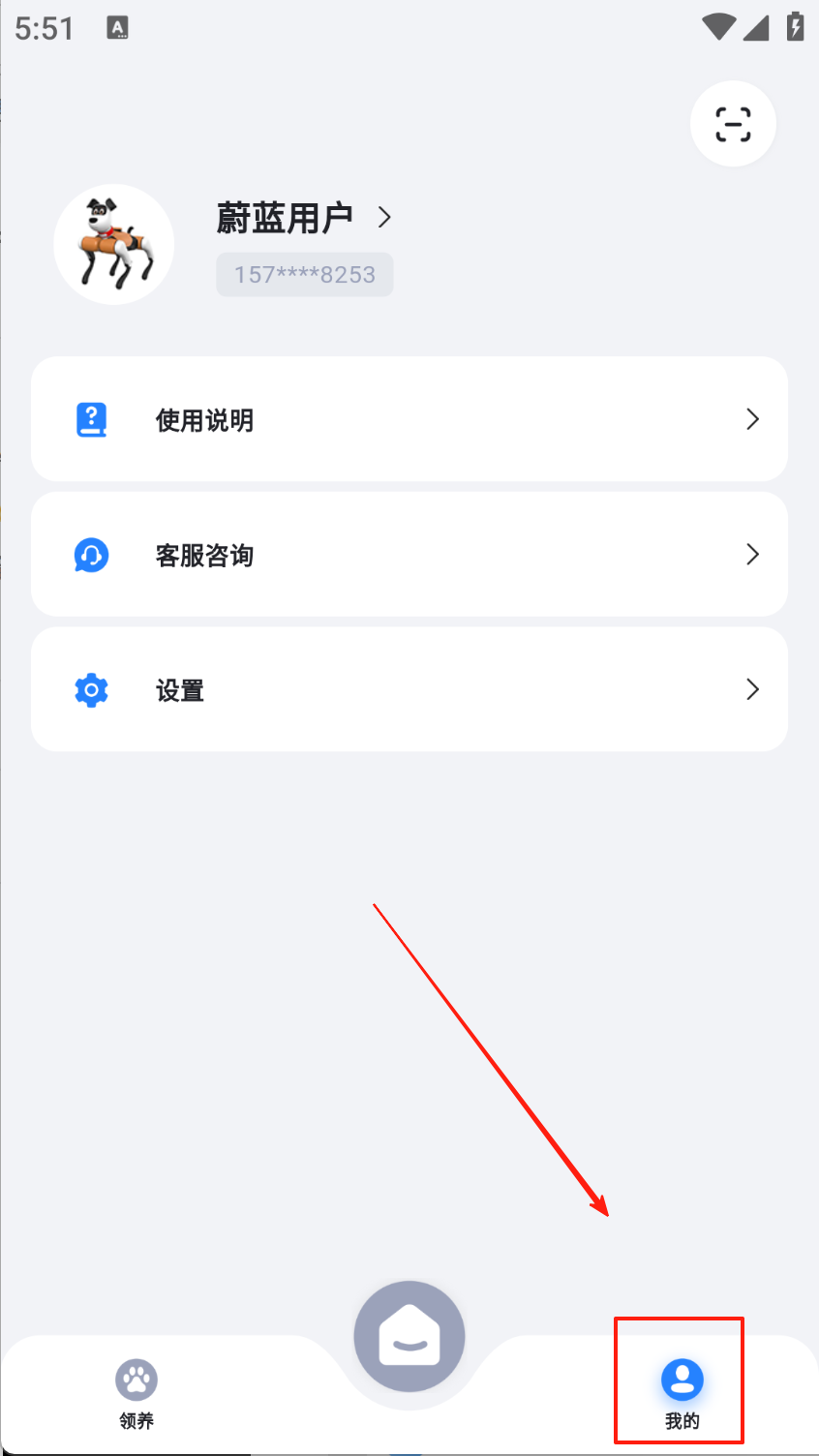 3、返回我的页面核对蔚蓝账号与绑定状态,开启智能陪伴。