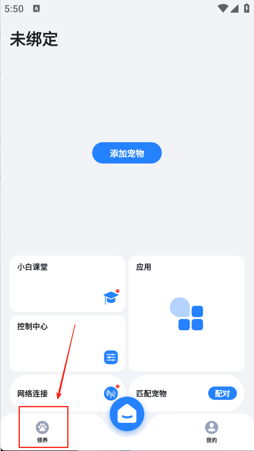 1、打开App点“添加宠物”,进入配对列表选择机器狗型号。