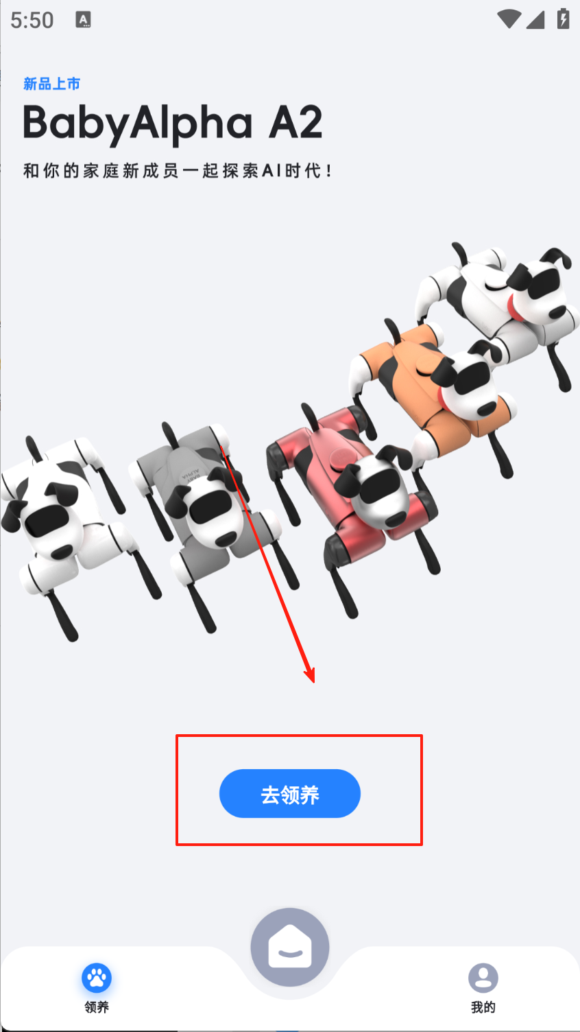 2、在领养页确认BabyAlpha A2信息,点击“去领养”完成认领。