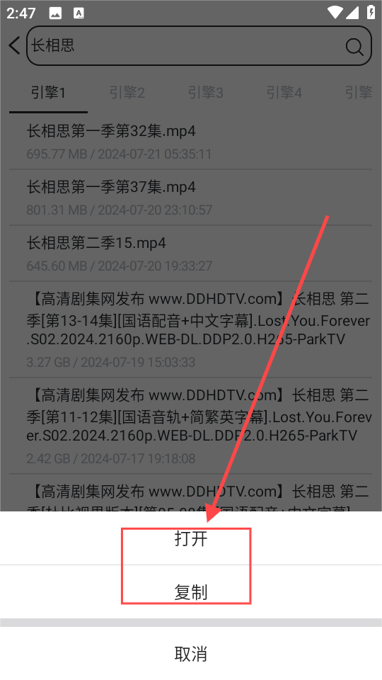 3、以“长相思”为例,输入关键词后点击搜索按钮,系统将为您展示相关资源列表。