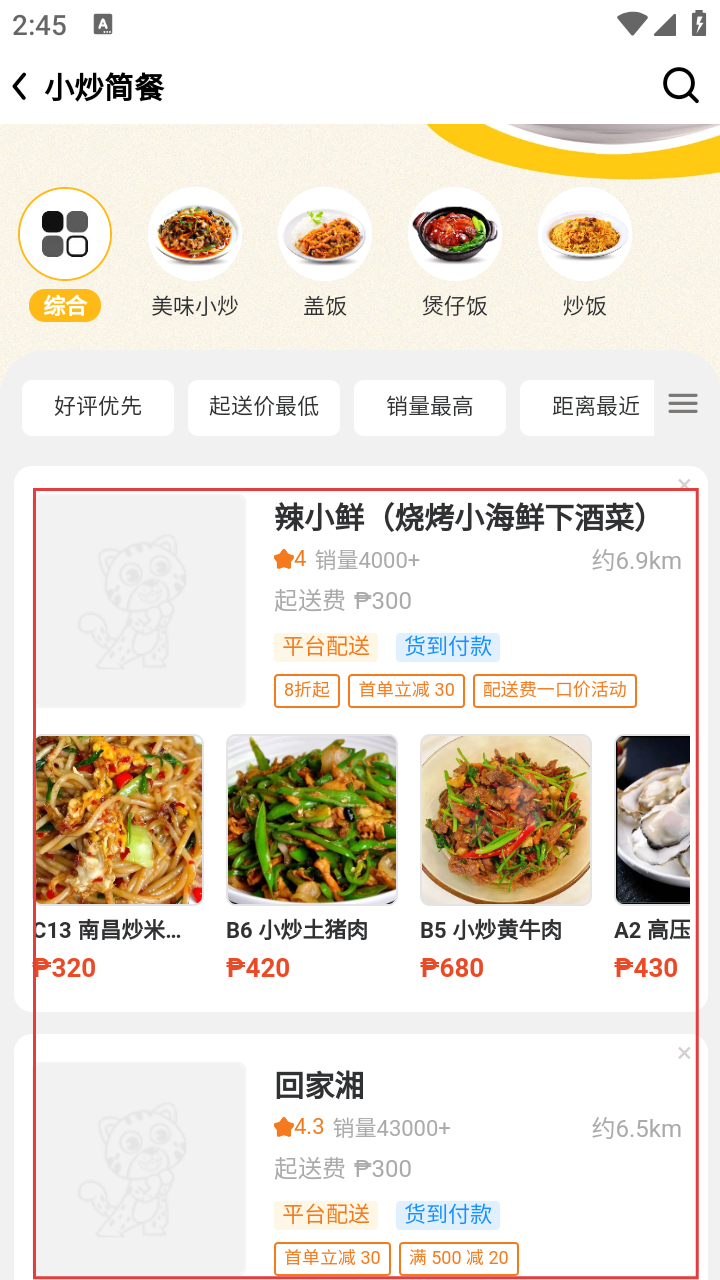 2、进入【小炒简餐】分类页,浏览商家列表,按需挑心仪店铺。