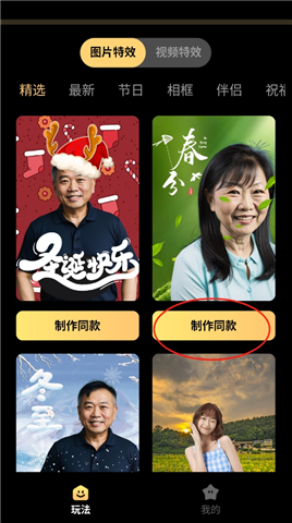 3. 选择心仪的特效样式,点击“立即制作”按钮。