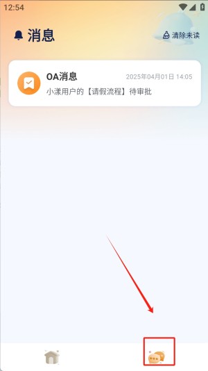 4、点击“消息”图标,进入消息通知页面,查看最新的审批状态和消息提醒。