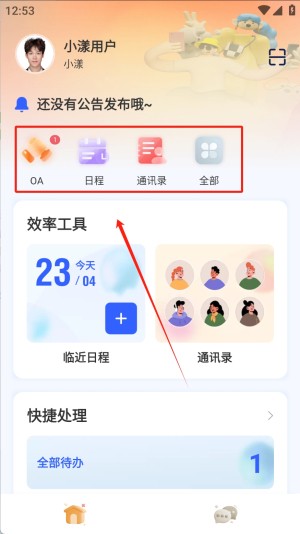 1、点击“OA”图标,进入办公自动化页面,在这里可以查看和处理办公任务。