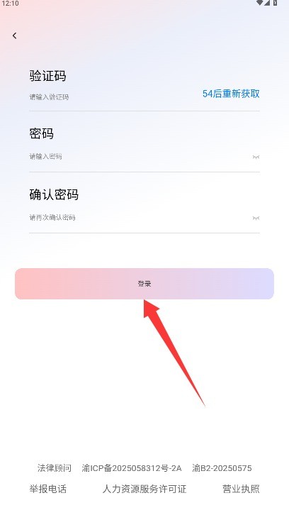 3.收到短信验证码后输入,再设个登录密码并重复输入一遍,注册完成点登录就能进应用了。