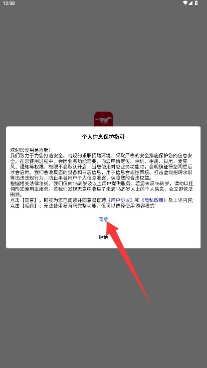 1.首次打开,先看用户协议和隐私政策,觉得没问题就点同意,进入登录页面。